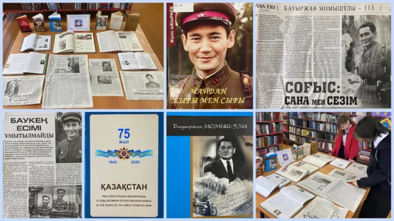 «Дружба» кітапхана-филиалында Кеңес Одағының Батыры Бауыржан Момышұлының туғанына 115 жыл толуына орай «Өз жерін дәріптеген батыр» атты тақырыптық сөресі безендірілген. Онда «История Казахстана», «Исторические личности», «Тұңғыштар» энциклопедияларының өмірбаяндық материалдары, Ж. Ыбыраевтың «Бауыржан Момышұлы. Майдан жыры мен сыры», Б. Момышұлының «За нами Москва», «Избранные произведения», «Из блокнота Бауыржана Момышулы» және т.б. кітаптар, сондай-ақ, «Ана тілі» газетінде жарияланған М. Қазыбек пен Қ. Қазбекованың «Соғыс: сана мен сезім», Б. Момынқұлдың «Батыр өмірінің беймәлім тұстары» сияқты мерзімді басылымдардың материалы және т. б. ұсынылған.
