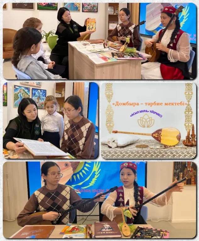 Кітапханашылар олар үшін «Домбыра – тәрбие мектебі» танымдық сағатын ұйымдастырды. Қыздар тұлғаның музыкалық және рухани қасиеттерін дамытуға көмектесетін тәрбиенің маңызды элементі ретінде домбыраның маңыздылығын білді. Іс-шара барысында қатысушылар белгілі күйшілердің шығармаларымен танысты, музыкалық теорияны зерттеді, сондай-ақ музыканы эмоциялар мен өмірлік сабақтарды жеткізу құралы ретінде түсіндіруді үйренді. Сонымен қатар, кітапханашылар домбырамен байланысты дәстүрлерді, сондай-ақ оның қазақ халқының философиясы мен дүниетанымымен байланысын сипаттайтын кітаптар мен мақалалар ұсынды. Іс-шара соңында қыздар бірнеше танымал күйлерді орындауға тырысты, бұл оларға домбыра дыбысының күші мен сұлулығын жанды дауыста сезінуге мүмкіндік берді.