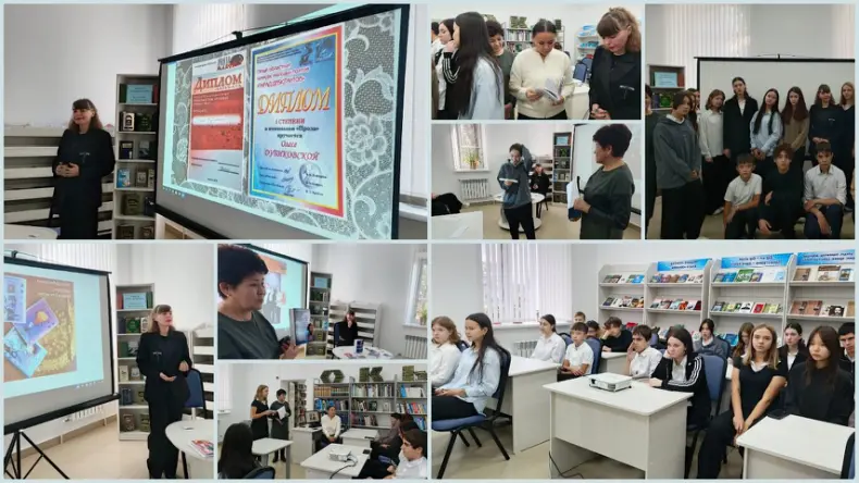 Книги, по словам Олеси, она стала писать с раннего возраста. На сегодняшний день ею написано более три десятка книг. Поэтесса представила участникам мероприятия свои книги. Школьники приняли участие в «Литературной прогулке» – викторине на знание произведений классиков литературы, вспомнили народные пословицы и поговорки о книге и чтении.