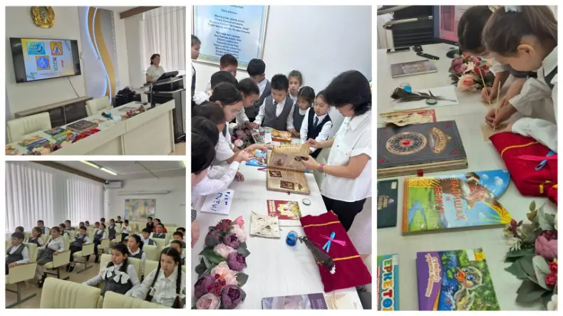 Библиотекарь рассказал, что Красная Книга – это свод различной информации о растениях и животных, которые находятся на грани своего исчезновения из-за вмешательства человека. Дети узнали о редких животных и растениях нашей страны, приняли участие в викторине «Мир природы» и отгадывали кроссворды. В завершение библиотекарь представил издания на тематической полке «Қызыл Кітапты парақтағанда».