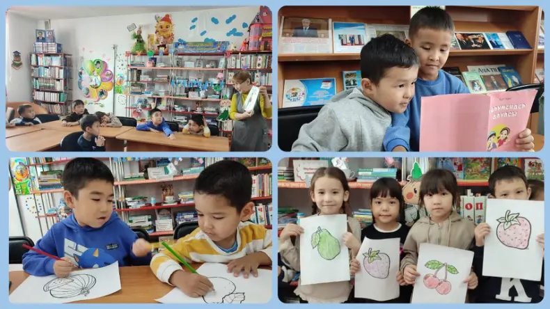 В библиотеке-филиале «Дорожный» для участников кружка «Ғажайып бөлме» был проведён воспитательный час «Жеміс-жидектер».