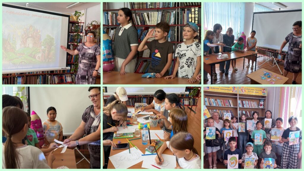 Ребята разделились на команды «Синие» и «Красные», затем отвечали на вопросы по народным и авторским сказкам, сыграли в «Веселую рыбалку» по сказкам А. С. Пушкина, показали свои актерские способности, изобразив сказочных персонажей, которых отгадывала другая команда. Завершилось мероприятие мастер-классом «Ох уж эти сказочки!» от руководителя кружка «Живопись и рисование» детского центра «Чудо-чадо» Елены Ивановны Тюриной.