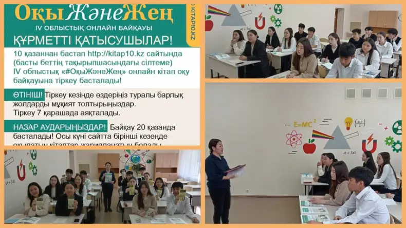 Библиотекари библиотеки-филиала «Южный» провели разъяснительную работу с учащимися 11 «А» классов школы № 20 имени М. Хакимжановой в целях популяризации IV областного онлайн-конкурса #ОқыЖәнеЖең».