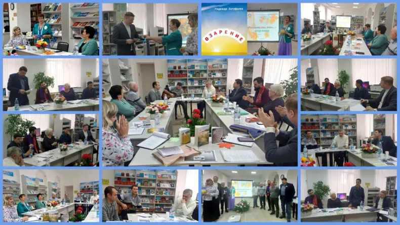 Поэтесса Надежда Антуфьева подарила библиотеке сборник стихов «Озарение». Бард Антонов А. исполнил лирические песни.