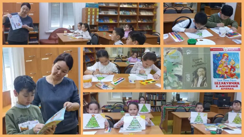 В ходе мероприятия ребята читали отрывки из небольших рассказов о зиме, стихотворения, среди которых были произведения А. Кунанбаева «Қыс», С. Маршака «Двенадцать месяцев», Э. Гофмана «Щелкунчик и мышиный король», Д. Лондон «Белый клык» и другие. Библиотекарь предложила детям нарисовать нарядную ёлку, зимний пейзаж. В завершение мероприятия ребята сделали выставку готовых работ.